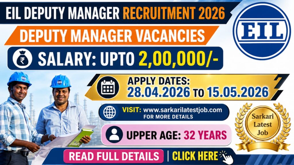 EIL Deputy Manager Recruitment 2026Dy.Manager, Mechanical & Electrical PostsSarkari Latest Job Portal (www.sarkarilatestjob.com) |