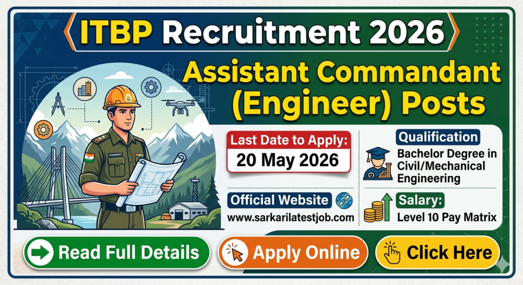 Short Information: The Indo – Tibetan Boarder Police Force (ITBP) has published a notification for post of the Assistant Commandant (AC Engineer) Vacancy. Details & completed all eligibility criteria can read the notification & Apply Online through Official Website from 21/04/2026 to 20/05/2026.