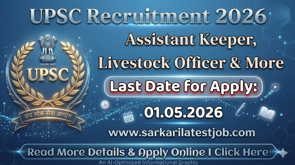 Short Information: The Union Public Commission (UPSC) has published a notification for post of the Assistant Keeper, Stock Officer & Live Stock Officer Posts Vacancy. Details & completed all eligibility criteria can read the notification & Apply Online through Official Website from 11/04/2026 to 01/05/2026.